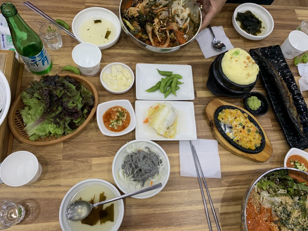 반찬 구성도 계란찜, 갈치, 옥수수콘부터 따끈한 매운탕까지 준비되어 식사까지 든든하게 먹을 수 있습니다.