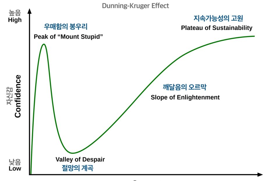 더닝 크루거 현상 이란 무엇일까요? 한국 속담 중 ‘빈수레가 요란하다’라는 말이 이에 해당한다고 할 수 있습니다. 더닝-크루너 현상이란 무엇이며 이… 더 보기 »더닝 크루거 현상 이란? ‘우매함의 봉우리’뒤에 오는 인지와 발전